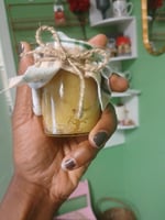 Stored in a glass jar with a bamboo lid , my shea scrub is so sweet and even feels as that. It's very rich and creamy in texture, partnered with Shea butter this gives it extra creamy vibes which melts right onto your skin.